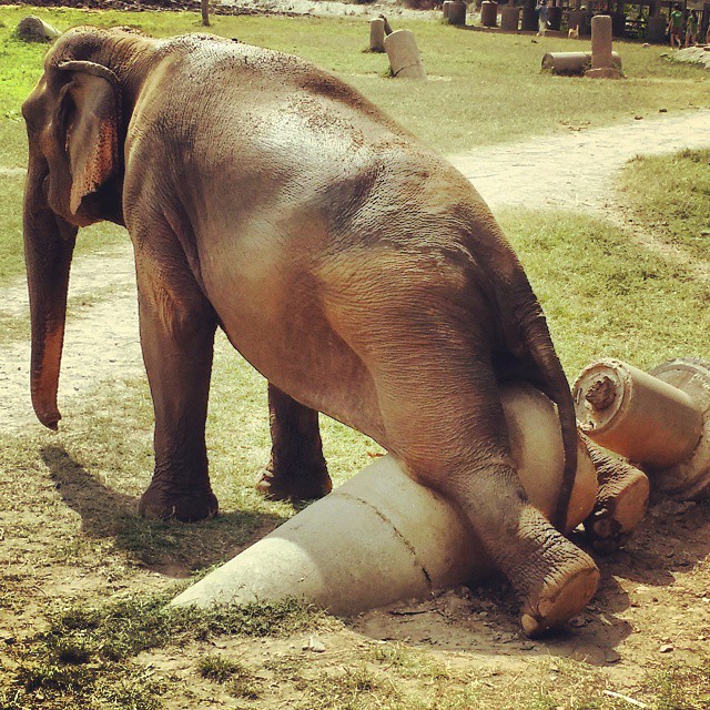 Quick elephant moment: This lovely lady has a broken right hip which often occurs from forced breeding. She stopped to scratch an itch while working her way to the river. ♡